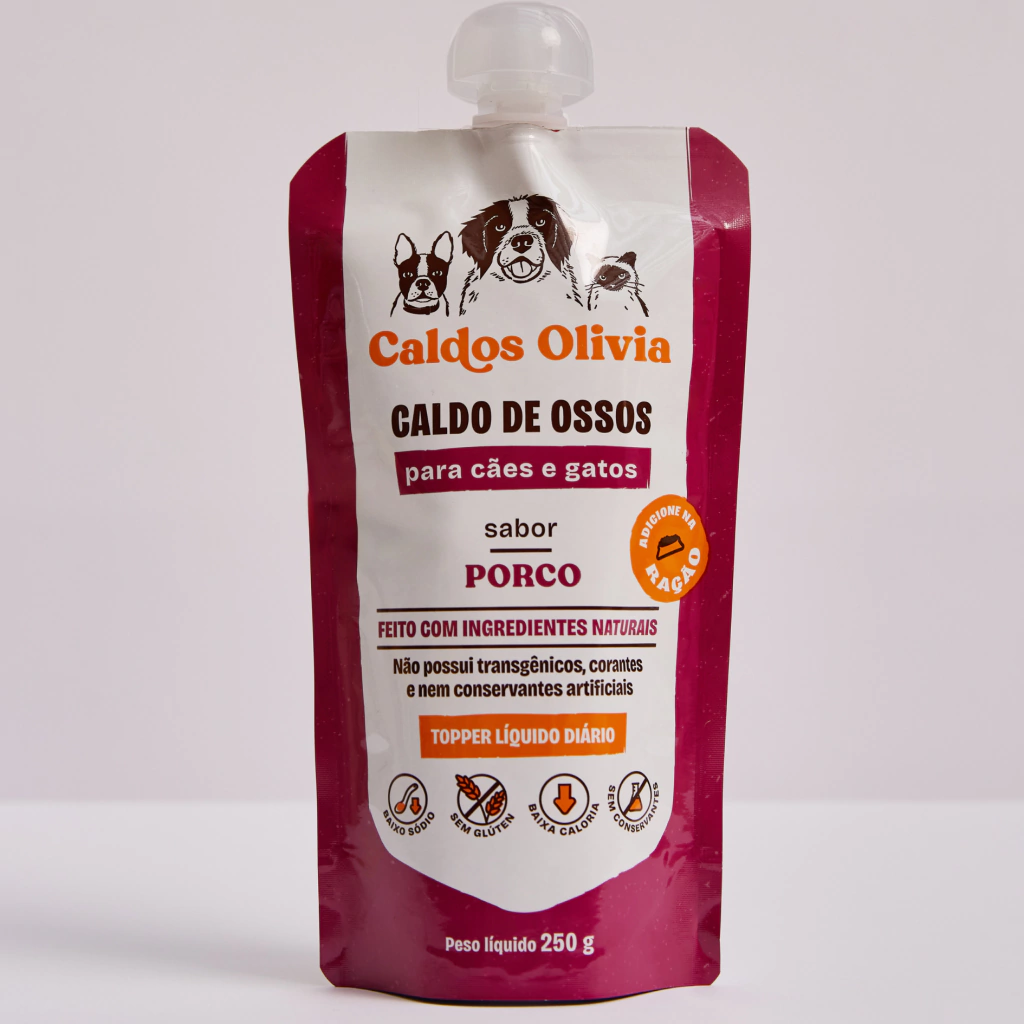 Eleve facilmente o sabor e a nutrição da refeição do seu pet com os deliciosos Caldos Olivia, totalmente natural, feito com ingredientes grade humana, seguro para pets e que fará até os comedores mais exigentes implorarem por mais.
