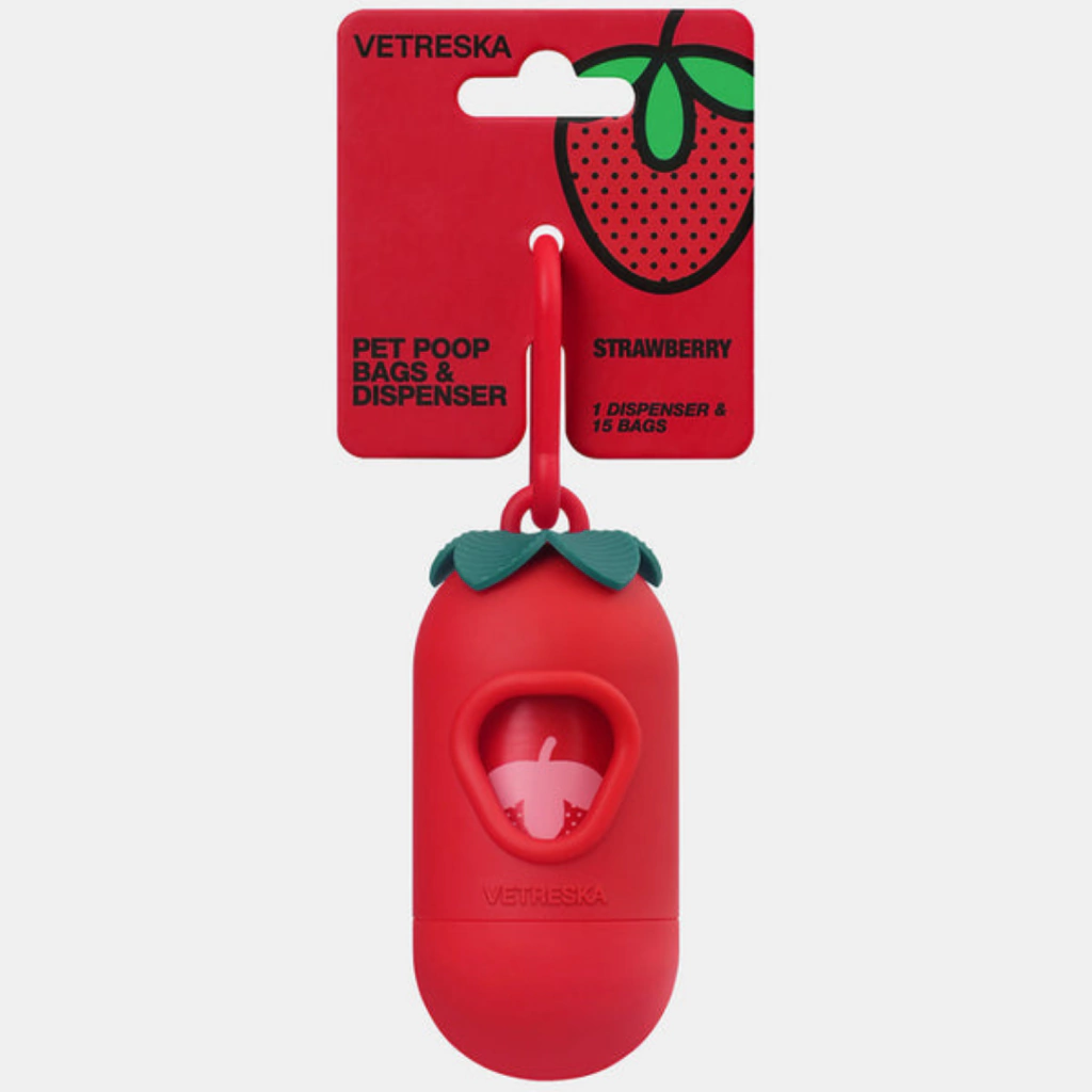 Transforme os passeios com seu pet em momentos mais leves, estilosos e funcionais com o Dispenser de Saquinhos VETRESKA Morango. Com design encantador em formato de morango, esse kit oferece uma solução prática e higiênica para a coleta de resíduos, sem abrir mão da estética.
