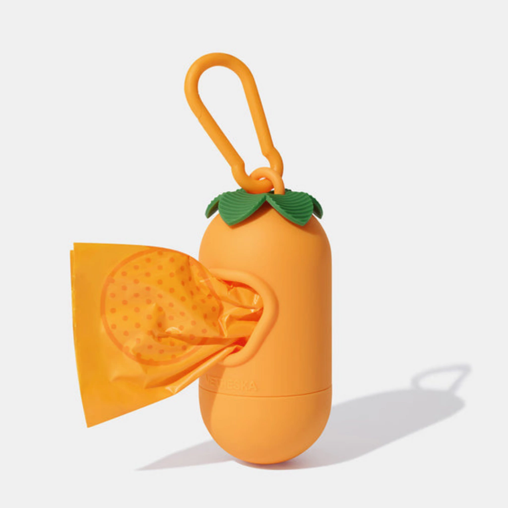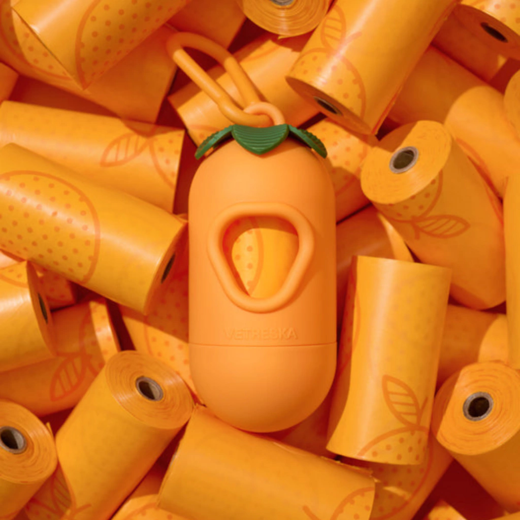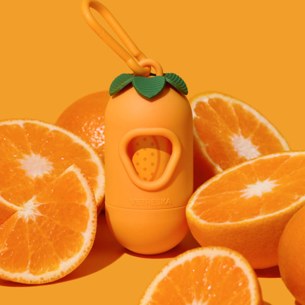 Dê um toque divertido e cítrico aos passeios com o Dispenser de Saquinhos VETRESKA Tangerina. Com design criativo em formato de tangerina, este kit une estilo, praticidade e cuidado com o meio ambiente em um só produto.