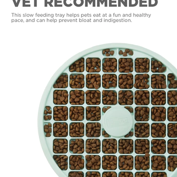 O design discreto da Bandeja Fun Feeder Slo torna mais fácil para raças braquicefálicas, como buldogues franceses e pugs, consumirem refeições em um ritmo saudável.