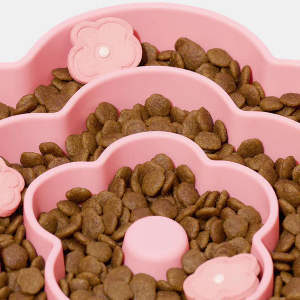Seu design inovador em formato de flor, com camadas e pétalas sobrepostas, cria obstáculos naturais que fazem o pet comer devagar, melhorando a digestão e evitando gases, engasgos e inchaços.