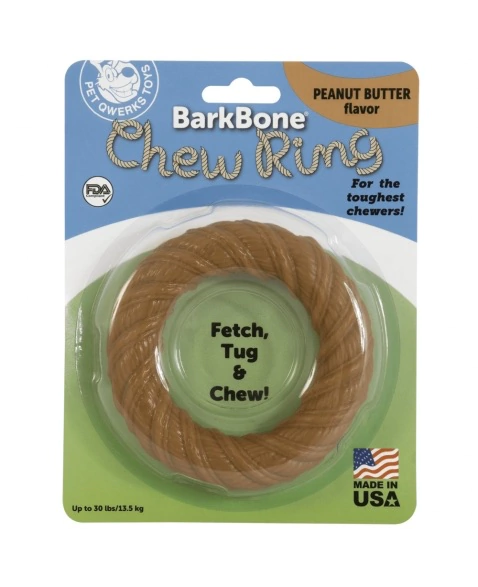Barkbone Chew Ring é um brinquedo de roer, fabricado com 100% nylon e com sabor de amendoim esterilizado e encapsulado ao nylon, para deixar seu cão estimulado pois o sabor e o cheiro vão sendo liberados à medida que o cão rói. Como roer é um instinto natural de seu cão, oferecer Barkbone Chew Ring poderá salvar suas cadeiras, móveis e sapatos. Direcionar o hábito de roer dos cães é muito mais saudável que reprimir. Design exclusivo e anatômico para mordedores fortes.